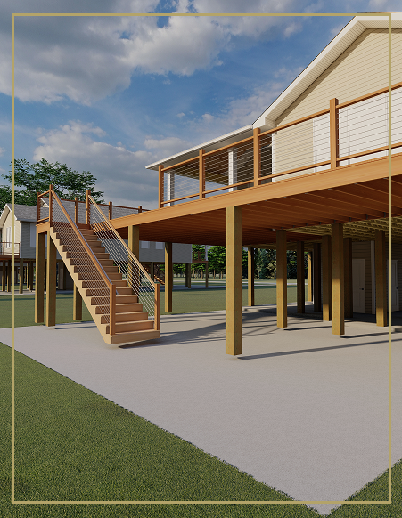 Our home models are designed for resilience—built on 9-ft pilings to stand strong through coastal storms.